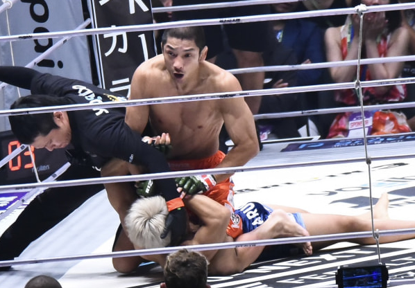 レフェリーがストップ