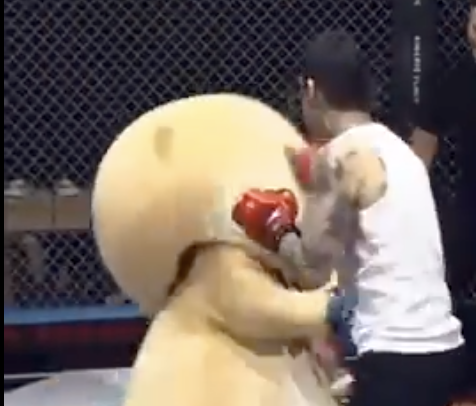 瓜田の右フックがちぃたんの顔面に食い込みダウン!(朝倉未来YouTubeより)