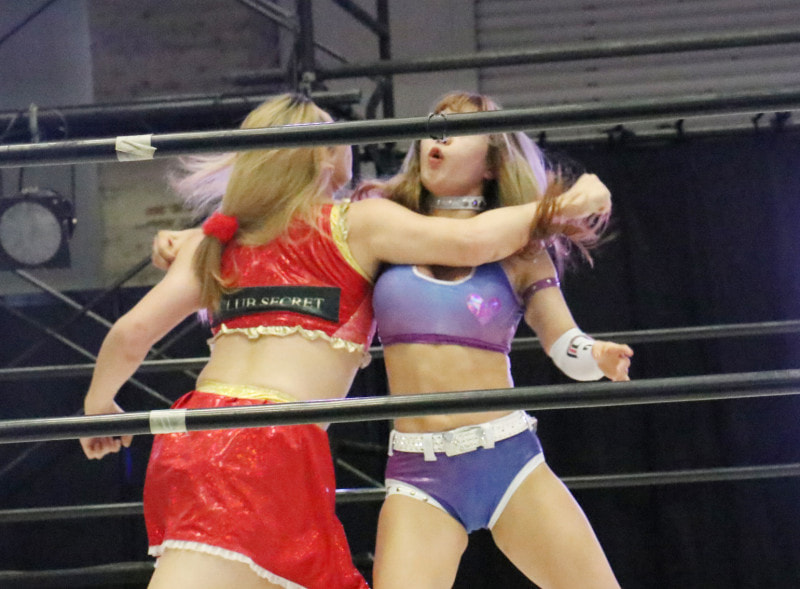 ラリアットを打ち合うエチカ(左)と、ちゃんよた