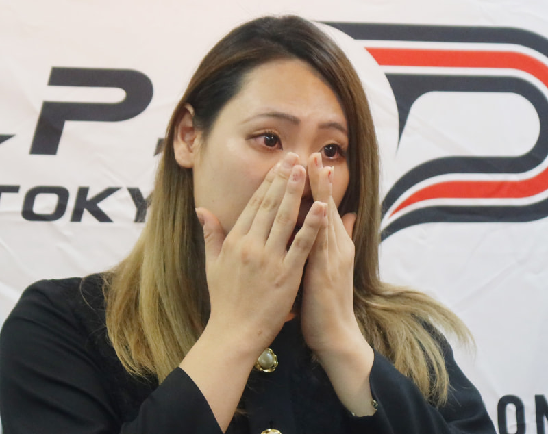 会見中に思わず目を潤ませるエチカ