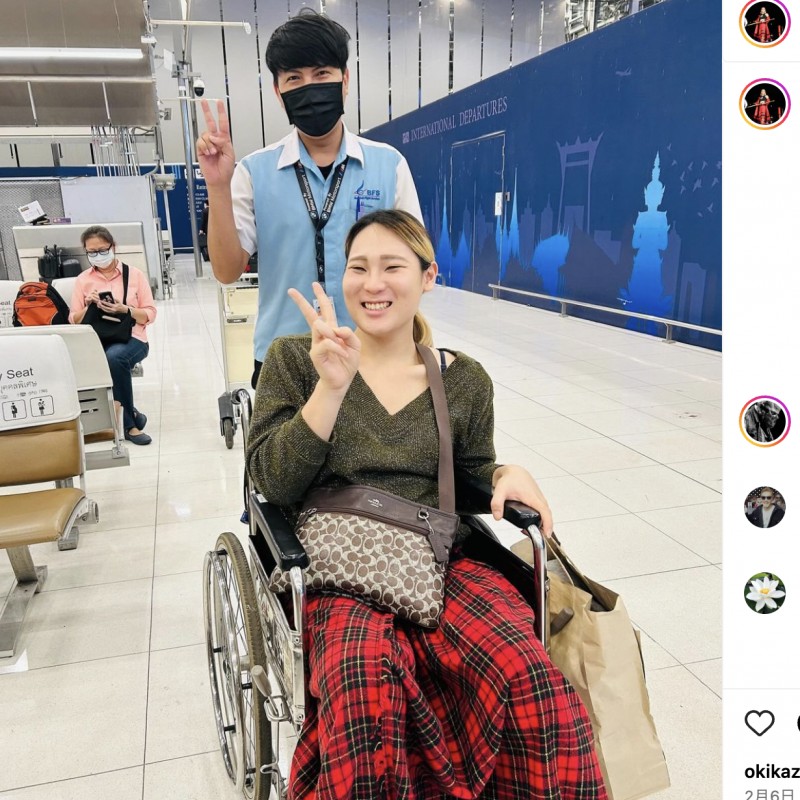 ミヤビのスッピン顔!性転換手術し車椅子で帰国=今年2月(@echikamiyaviより)