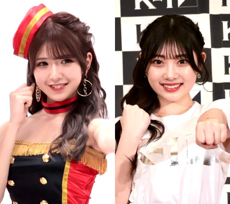 サポーターの小浜(右)とKrushガール荻野(左)が対決