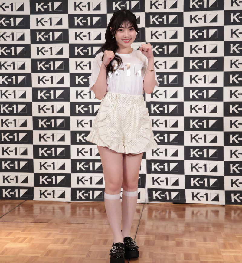 会見でミニスカ姿の小浜