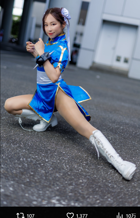春麗コスで健康美の太ももを見せる霧島(@renna1208)