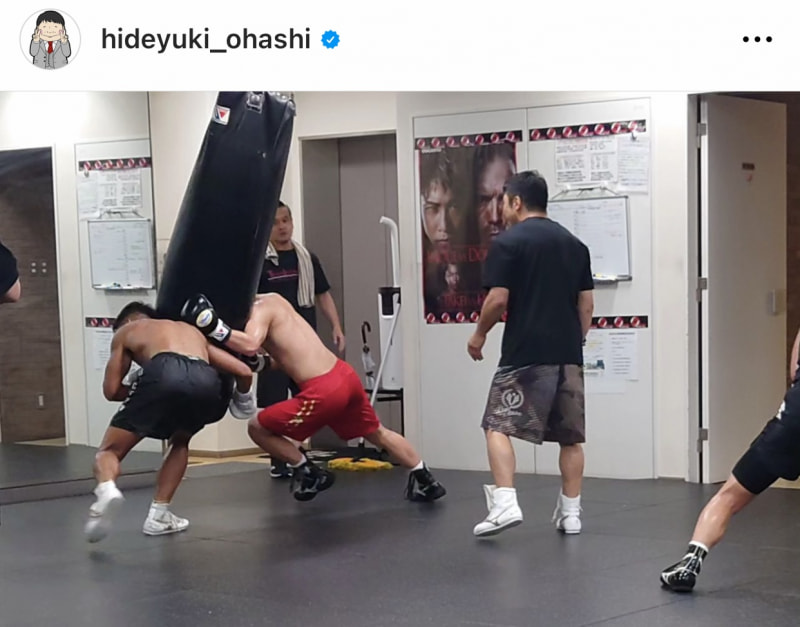 2人で猛烈サンドバッグ練習@hideyuki_ohashi