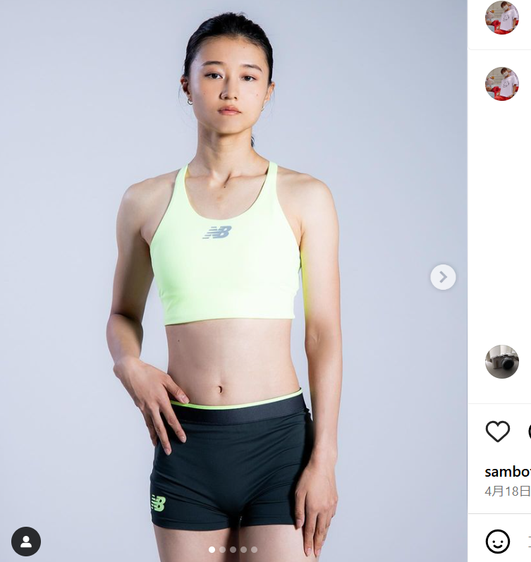 ニューバランスアスリートとして契約している田中のスポブラ姿(@yu____den)