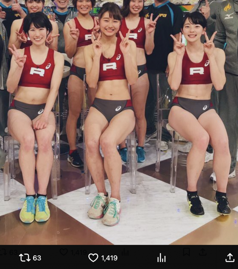 体育会TVに出演時の田中(中央=田中佑美Xより)