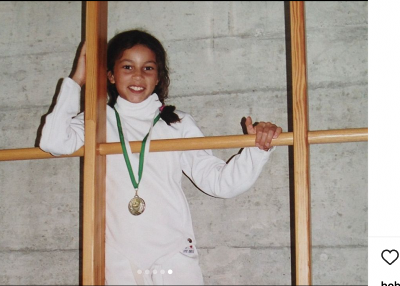 バルゼが公開した幼少時代の写真。フェンシング着で首からメダルを下げている@balzersaraより