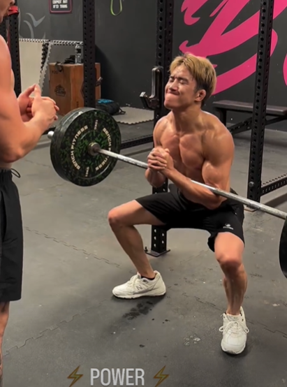 これが朝倉が取り組んでいるザーチャースクワット。手首やヒジのけが予防になるが、大腿四頭筋への負荷がかなりかかる(@bbigs_)