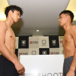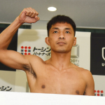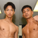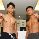 笠原が計量パスでマッスルポーズ