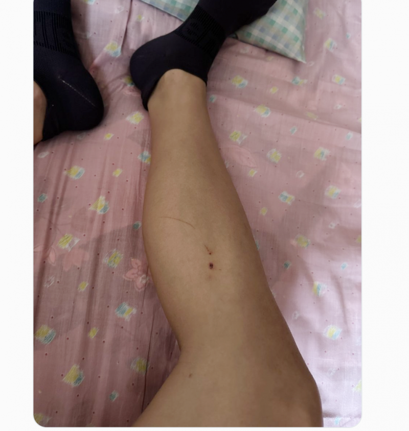 出口のふくらはぎから出血!(本人から修正依頼のXリポストより)