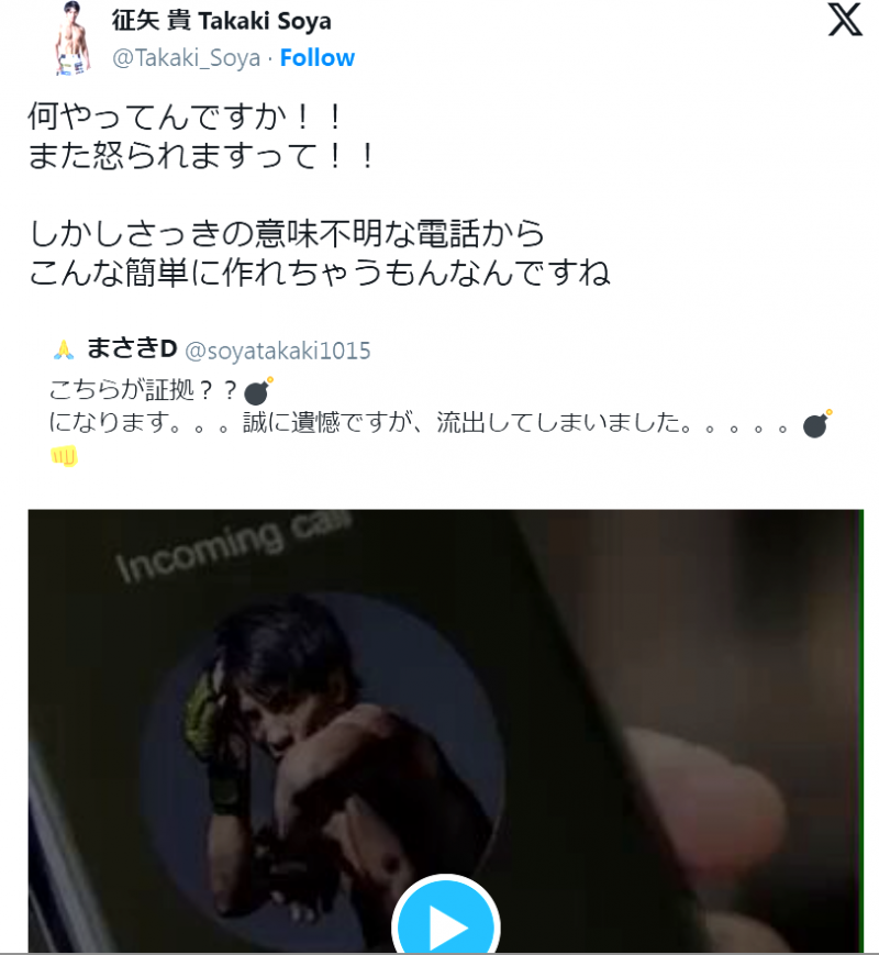 征矢が今月20日に投稿したXの画像(@Takaki_Soya)