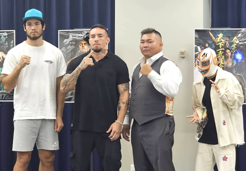 会見に出席した(左から)三上、木村、照強、村田
