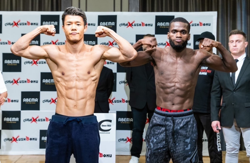 亀田和毅とドラミニがマッスルポーズで競演©亀田プロモーション