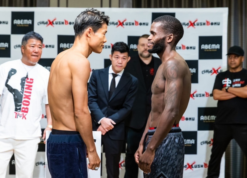 亀田和毅とドラミニがフェイスオフ©亀田プロモーション