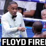 レフェリーに激怒するメイウェザー @DAZNBoxingより