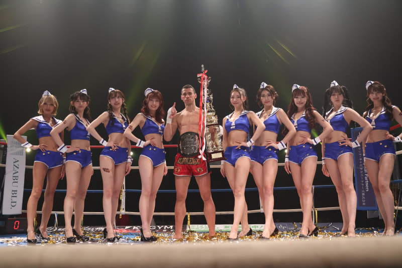 K-1の7月大会でラウンドガールを務めた波北(右から4番目)