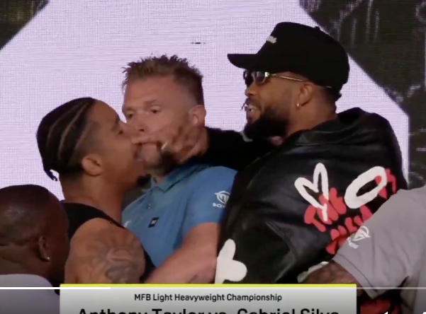 ガブリエル(右)がテイラー(左)に指差し@HappyPunch