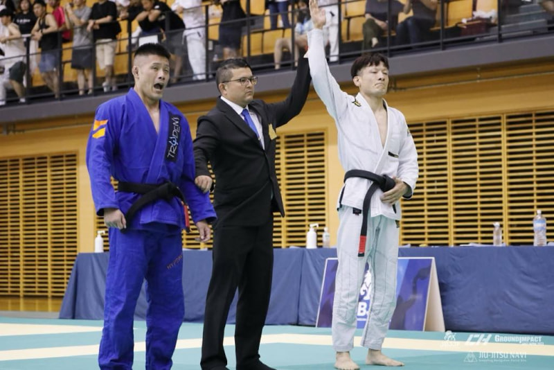 勝ち名のりを上げる柳沢(右)(JIU-JITSU NAVIより)