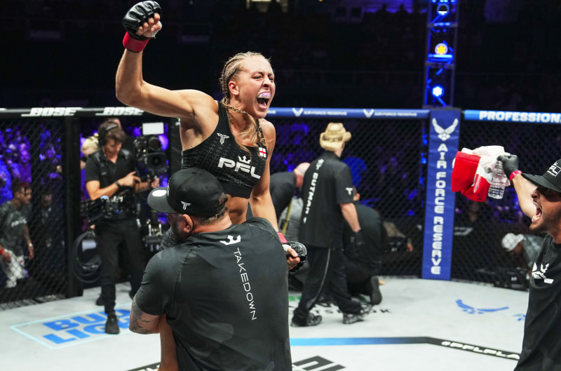 無敗のモデル美女ディチェバ、顔面ヒザ蹴り&悶絶前蹴りで3連続1R KO勝利!©️PFL