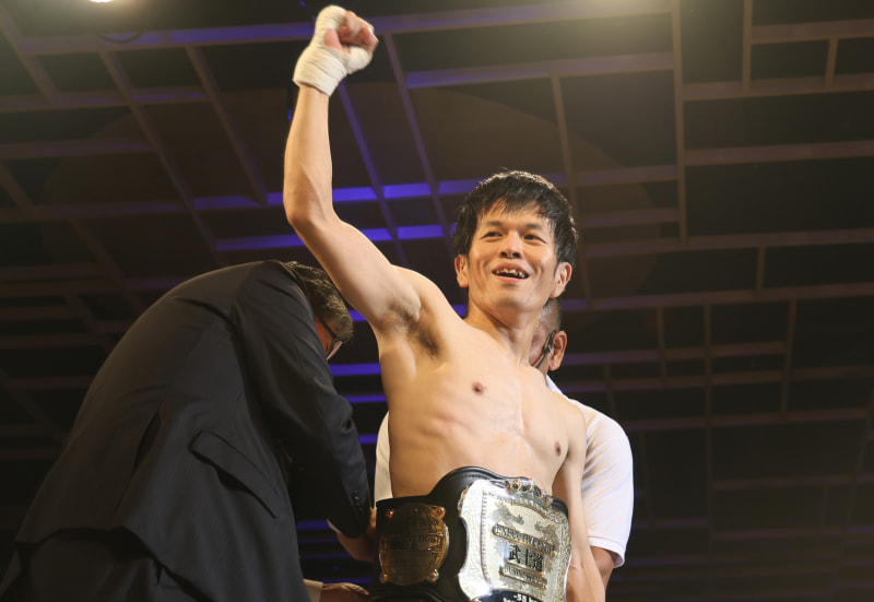 社会人キック「EXECUTIVE FIGHT」のベルトを巻いた森永康平