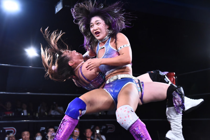 “デカ女”まなせにショルダーアタックを決めるちゃんよたⒸPPP TOKYO