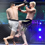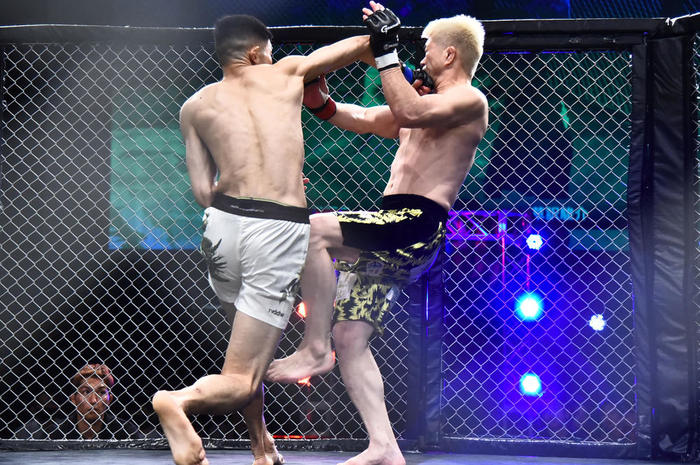 右ストレートをクリーンヒットする草訳駿介