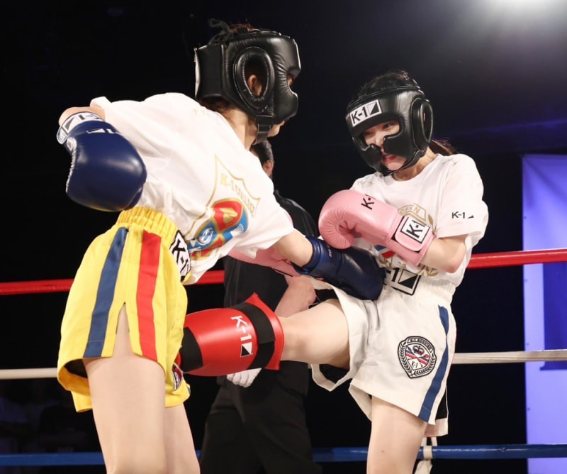 荻野がパンチ、小浜がキックで攻める(C)K-1