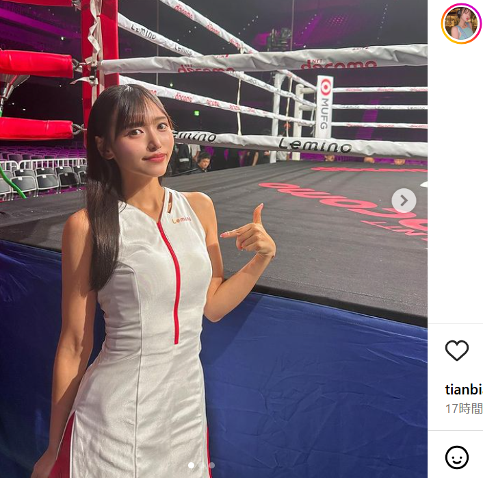 リングサイドでのラウンドガール姿(@yuumihikichi)