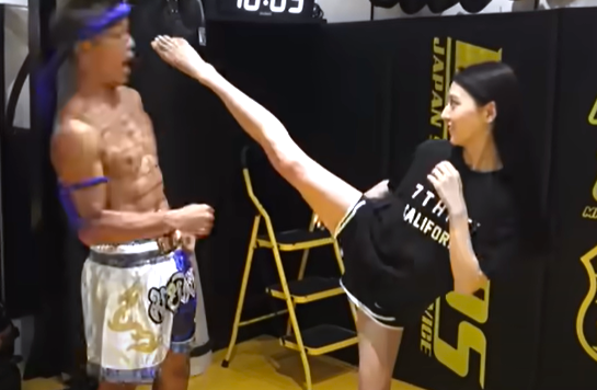 城戸にハイキックを繰り出す宮原(『城戸康裕のきーちゃんネル』より)