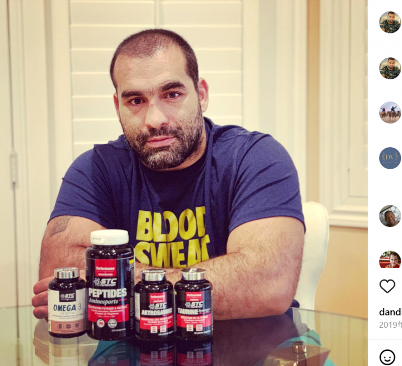 サプリメントを机に並べるイワノフ(@blagoyivanovmma)