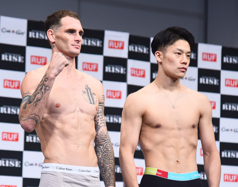 世界トーナメント査定試合に臨む麻火佑太郎(右)と、チャド・コリンズ