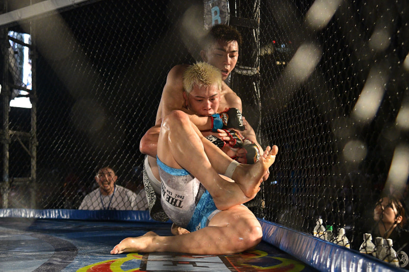 雨に濡れヌルヌル状態で戦う西谷(前)