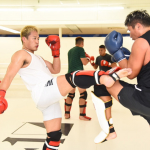 キックを放つ谷川とそれを受けるK-Jee(CK1)