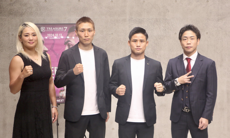 京口はセミに出場する 左から藤原茜、小國以載、京口紘人、谷口将隆