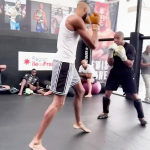元UFC王者ガーヌ(右)が2m越えのNBA選手とスパー@ChampRDSより