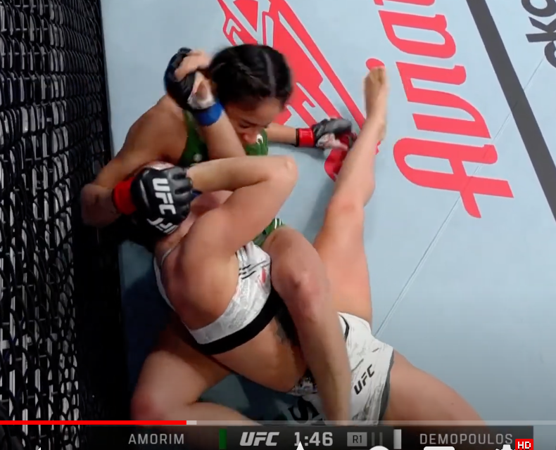 アモリムが腕十字のセットでデモポロスの右手首を掴んでいる@UFCJapanより