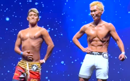 ムキムキボディの参加者と並ぶと、肉体の違いが露骨に(『よーでぃーのチャンピオンロード』より)