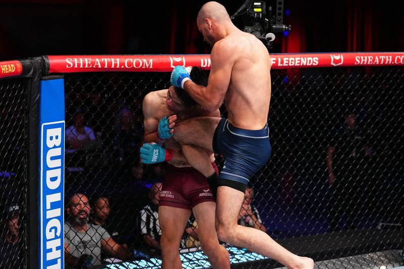 ベルガウイが飛びヒザを効かす! (c)UFC
