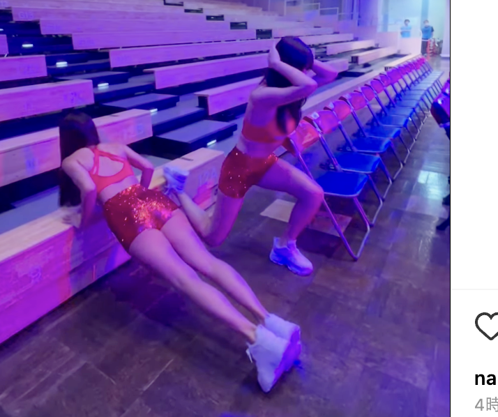 SHINO(左)は腕立て、りさぶーはブルガリアンスクワットをラウンドガール前にこなした(SHINOとりさぶーのインスタストーリーより)