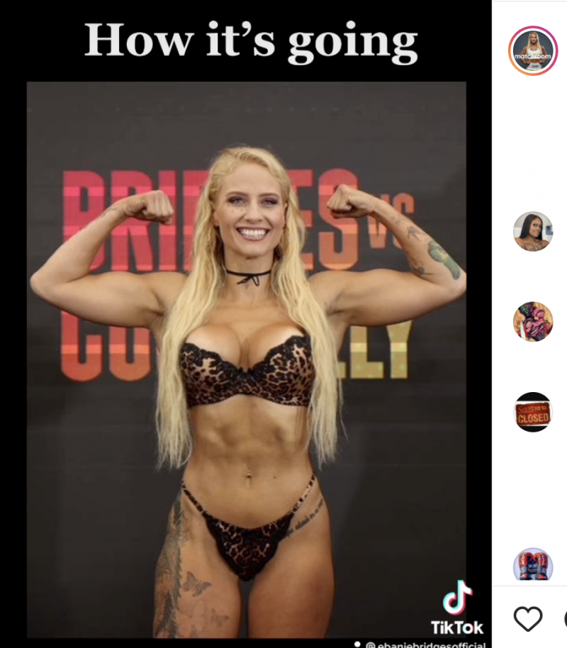 計量をランジェリー姿で挑むブリッジス(@ebanie_bridgesより)