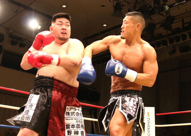 22年7月のビッグバンで星(右)が坂本英則(左)を左フックでKO勝ち