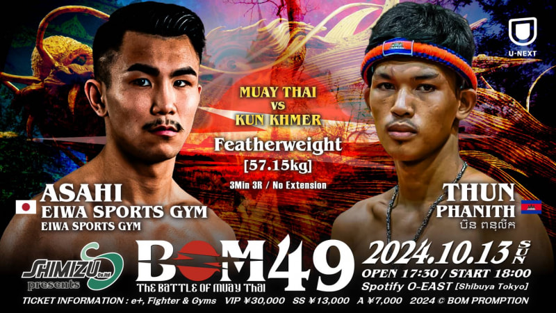 ムエタイvsクンクメールで対戦する朝陽・エイワスポーツジム(左)とトゥーン・ファニス(右)