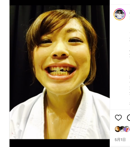 試合で折れた前歯(植草のインスタより)