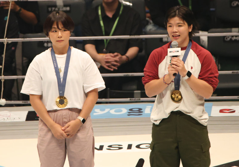 藤波朱理(左)と鏡優翔(右)がリングイン