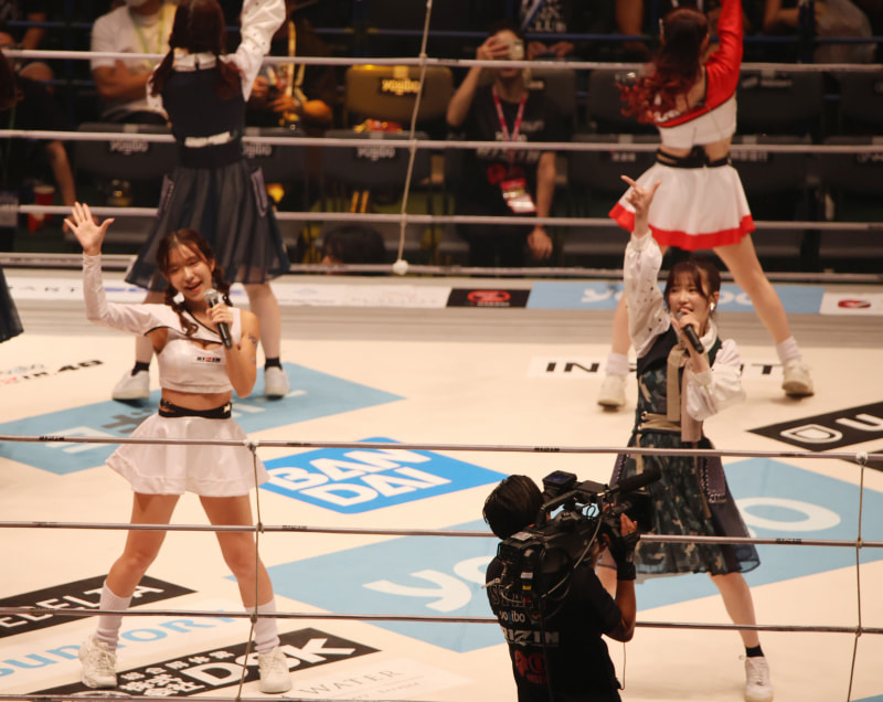 「恋するフォーチュンクッキー」を歌うRIZINガールとAKB48