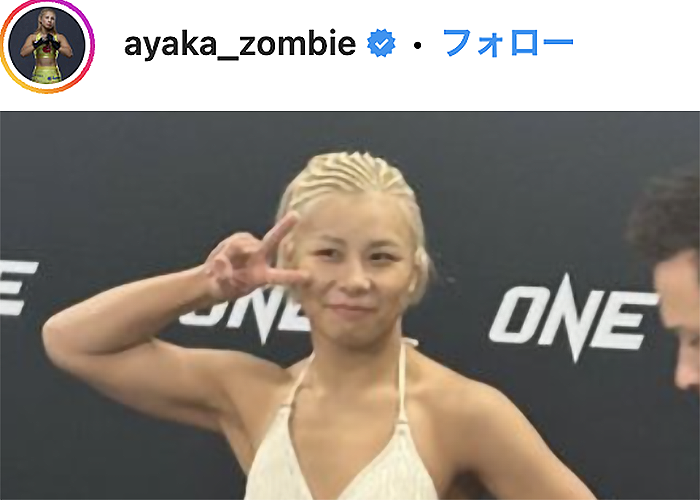 試合前、“腹筋バキバキ”ボディを披露する三浦@ayaka_zombie