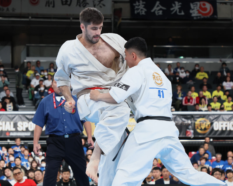 長身から上段ヒザ蹴りを繰り出すマレック・ヴォルニー