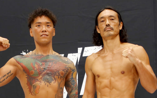 鍛え上げられた肉体を披露する山口(左)と安彦(右)