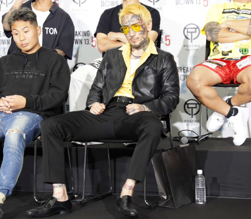 イメチェン瓜田は金髪に黒のジャケットとズボン、黄色ののシャツ